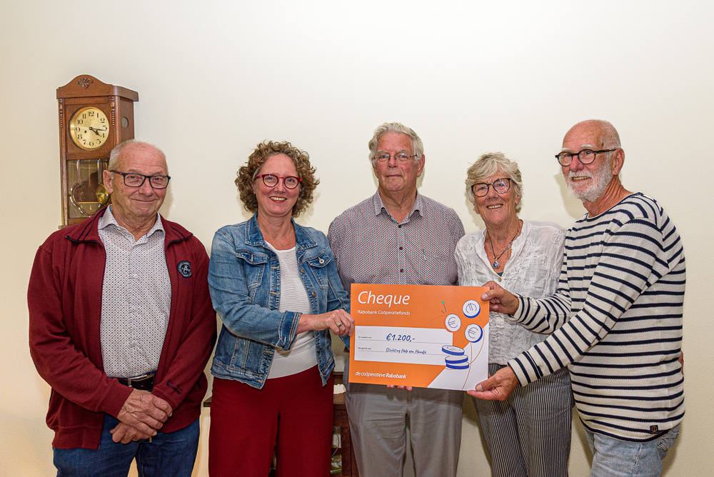 Stichting Help een Handje (Koggenland) heeft een cheque van € 1.200 ontvangen van Rabobank West-Friesland.